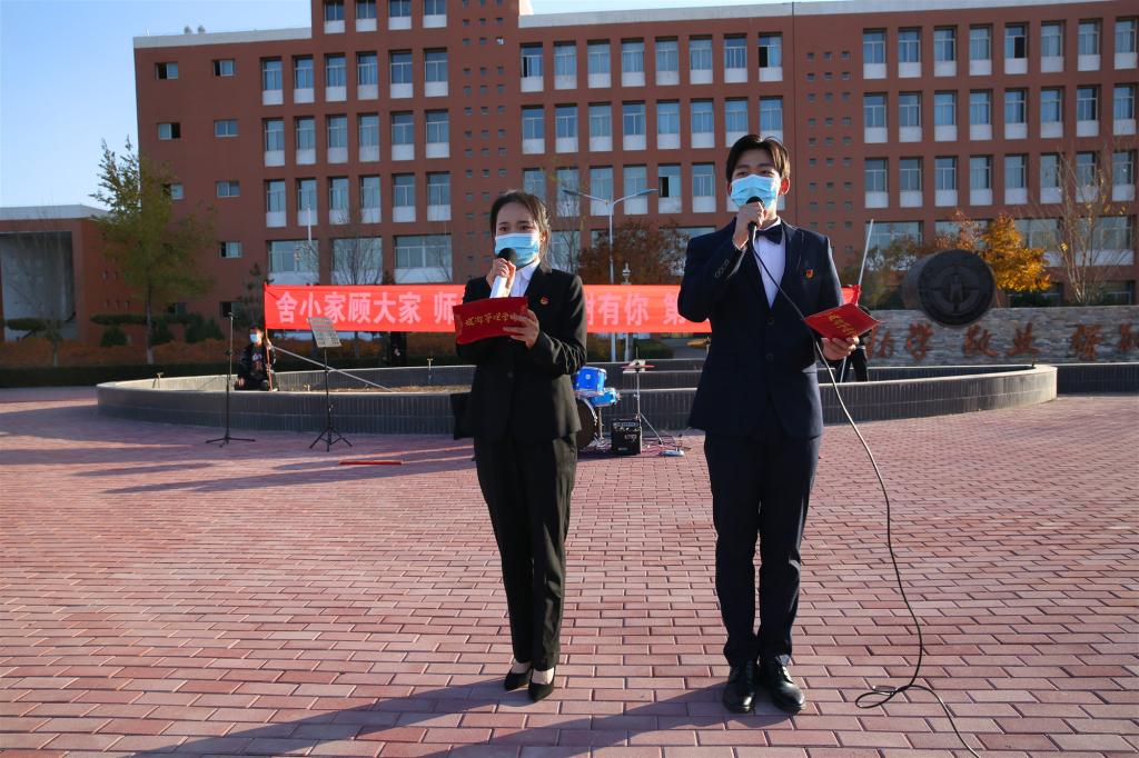 11月3日,由旅游管理學院黨總支承辦,學生處、繼續教育處協辦的學校第五十九期“道德講堂”活動圓滿結束。本期道德講堂主題為“舍小家顧大家師生同行感謝有你”。學校領導陳曉軍、宛國成、原秦英、宋瑩、寧曉娟與師生代表在厚德廣場一同參加了活動。