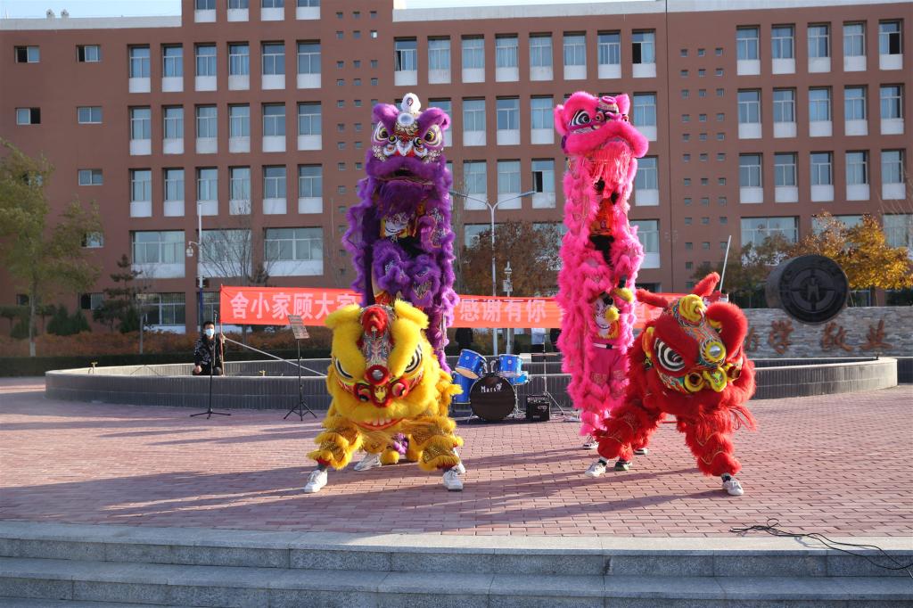 2020級高級烹飪班的郭悅作為舞獅非物質文化遺產傳承人,帶領他的舞獅隊為大家帶來了精彩十足的舞獅表演。威風凜凜的舞獅踩著鼓點抓耳撓腮,跳躍打滾,勇猛憨厚如有神,驚險逗趣樂趣多,贏得了滿堂喝彩。