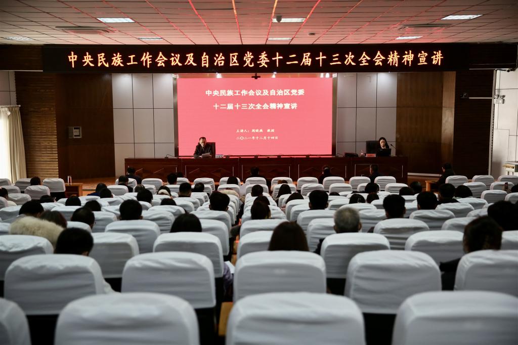 按照自治區(qū)黨委統一安排,12月14日下午,寧夏社會主義學院周曉燕副教授以中央民族會議和自治區(qū)黨委第十二屆十三次全會精神為主題,到我校作專題宣講。學校黨委領導班子成員、教師黨員代表約150人聆聽了報告。