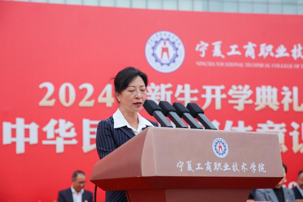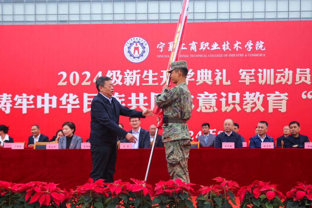 恰時逢仲秋,綿雨細紛紛。9月10日上午,寧夏工商職業技術學院2024級新生開學典禮 軍訓動員大會暨鑄牢中華民族共同體意識教育“開學第一課”在圖文信息廣場隆重舉行,新同學們跨越千山萬水,懷著對大學生活的憧憬相聚工商學院,開啟人生新的旅程。學院黨委領導班子成員、西夏區武裝部有關負責同志出席大會,二級學院黨政負責人、副院長、專職輔導員、新生兼職輔導員以及全體2024級新生參加大會。大會由黨委副書記寧曉娟主持。