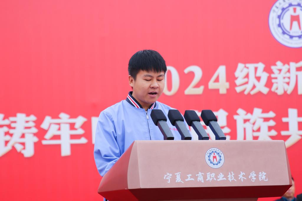 能源化工學院2023級應用化工技術班張凱龍代表全體在校生,向學弟學妹們表示熱烈歡迎,并分享了在學院的成長和收獲。鼓勵新同學們把握機遇、腳踏實地、心懷大我,將青春汗水揮灑在祖國大地上,揮灑在實現中華民族偉大復興的中國夢的路途中。